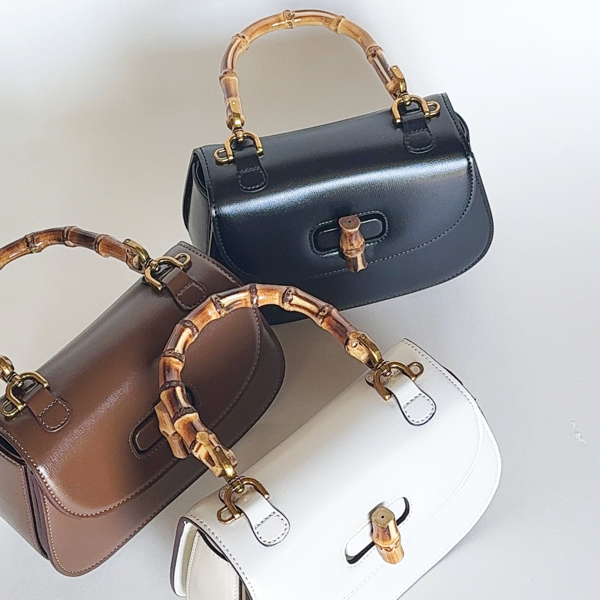 ANA is a compact, structured top-handle handbag crafted in rich brown leather. It features a curved flap with a bamboo turn-lock closure and a matching bamboo-style handle, giving it a vintage-inspired yet timeless look. The gold-tone hardware adds a refined touch, making it an elegant accessory for both casual and sophisticated outfits.