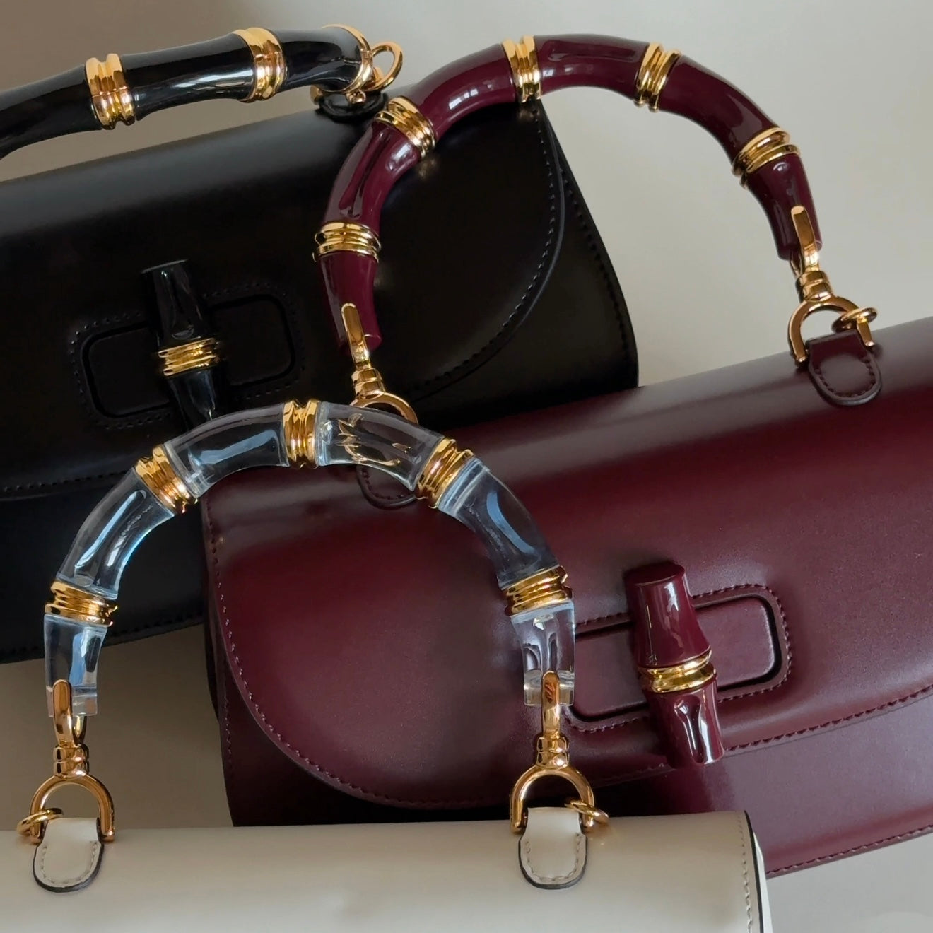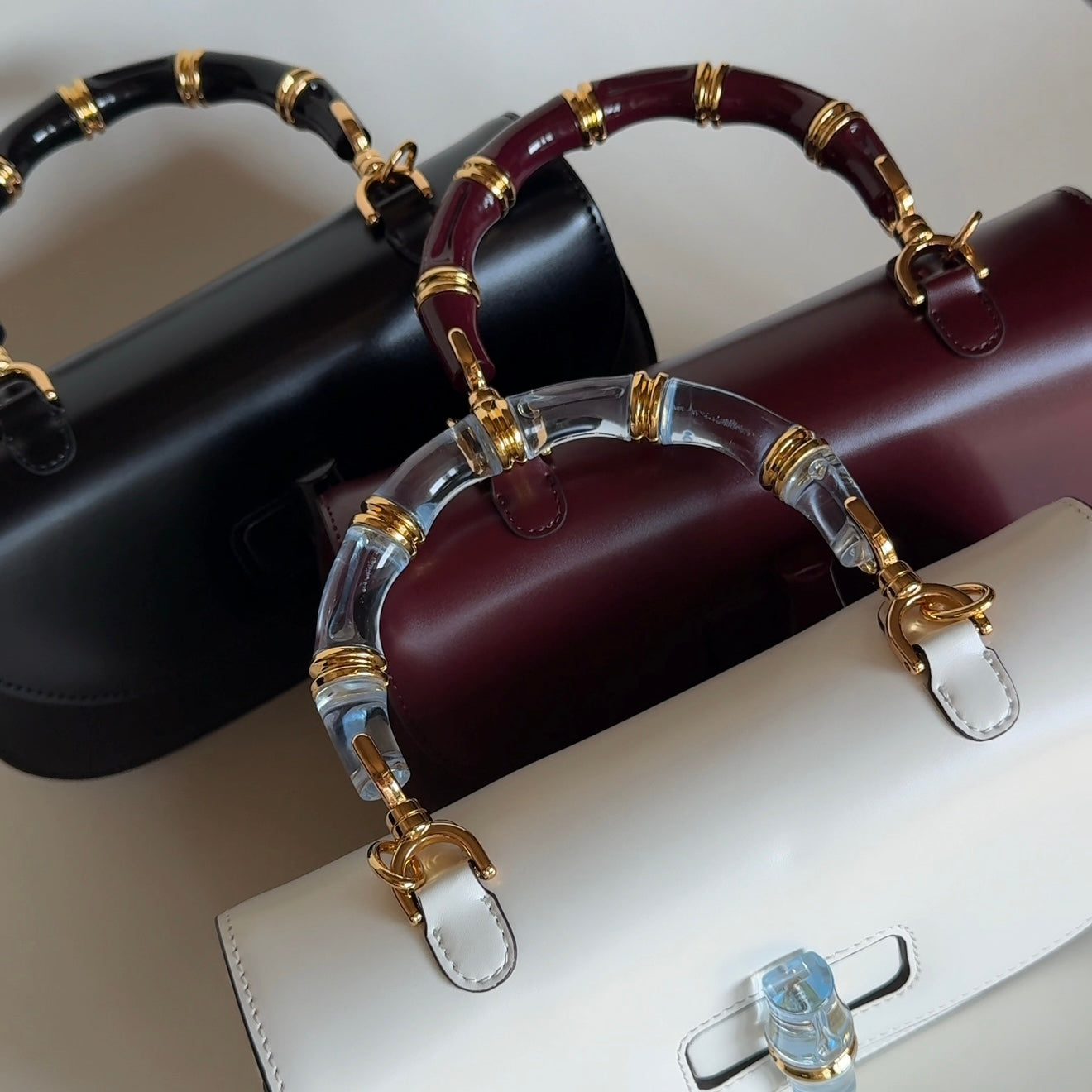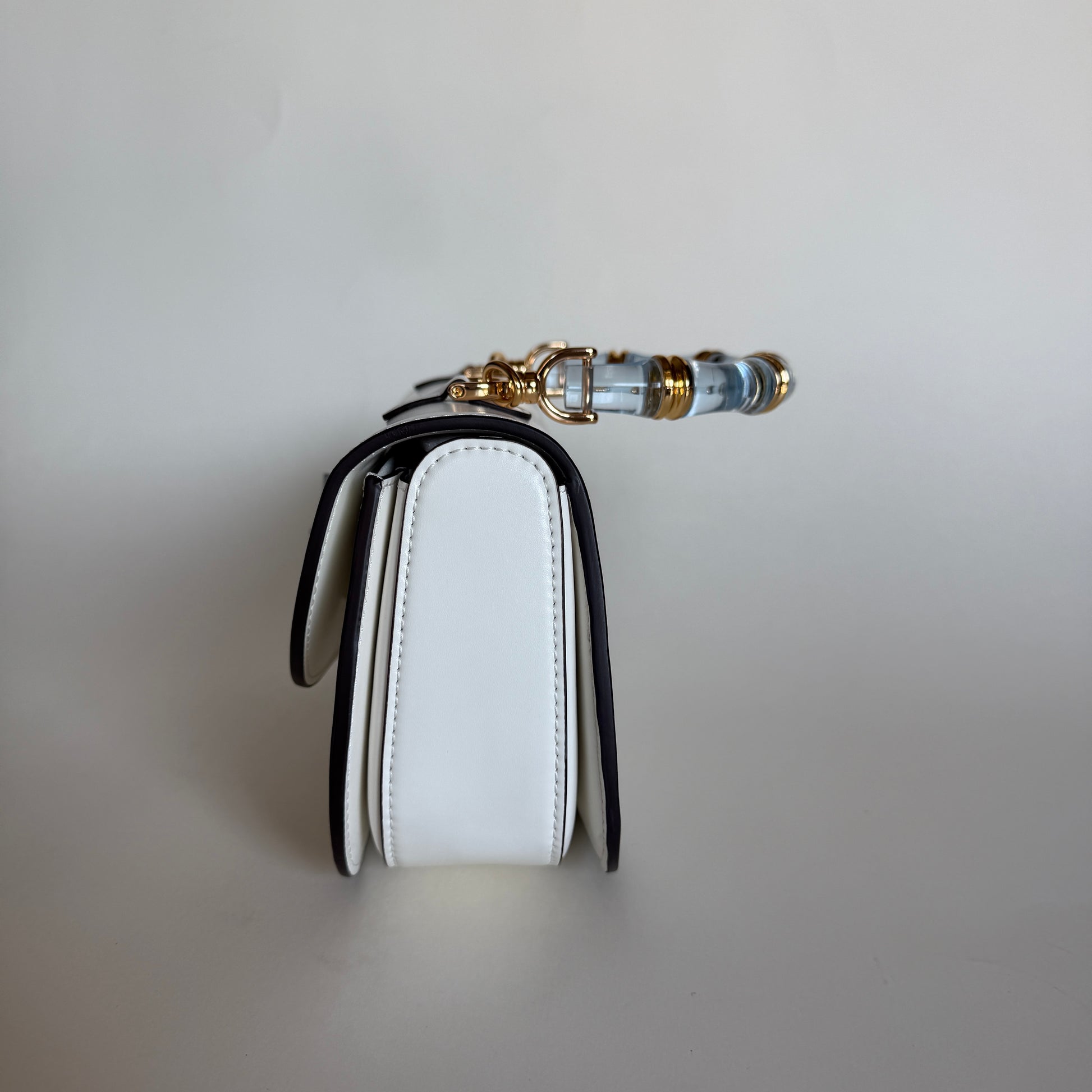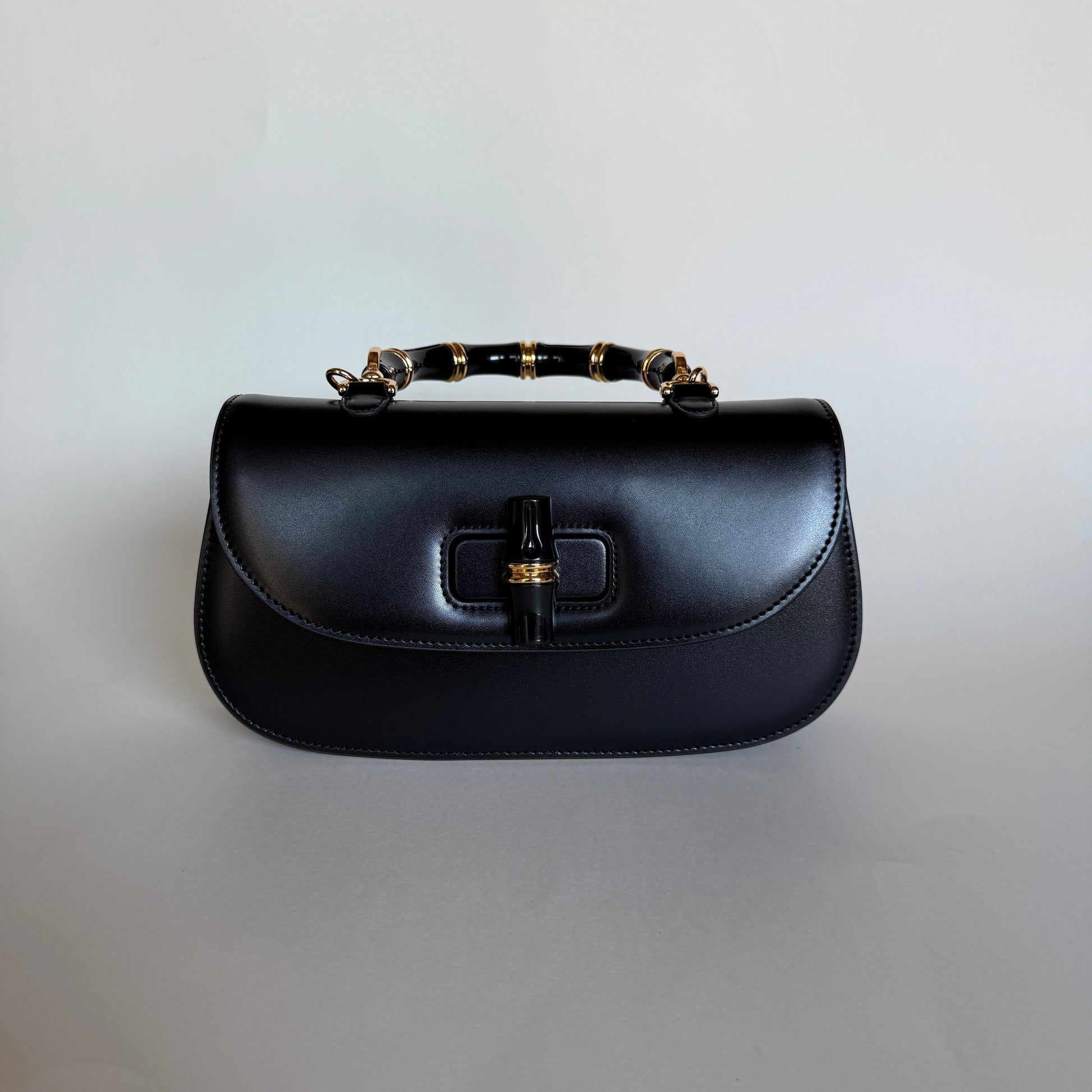 ANA CERAMIC is a compact, structured top-handle handbag crafted in rich leather. It features a curved flap with a ceramic turn-lock closure and a matching ceramic-style handle, giving it a vintage-inspired yet timeless look. The gold-tone hardware adds a refined touch, making it an elegant accessory for both casual and sophisticated outfits.