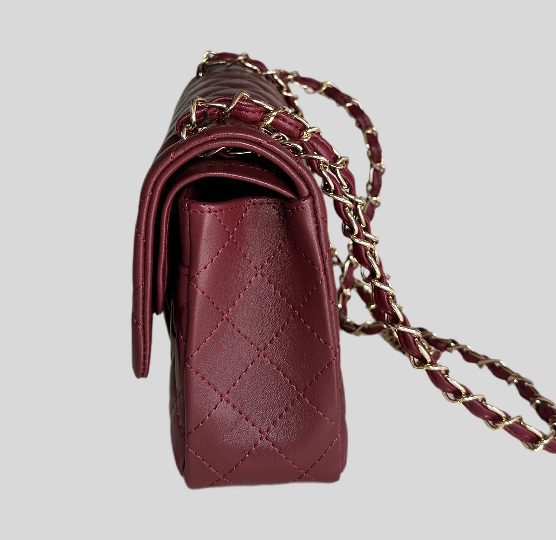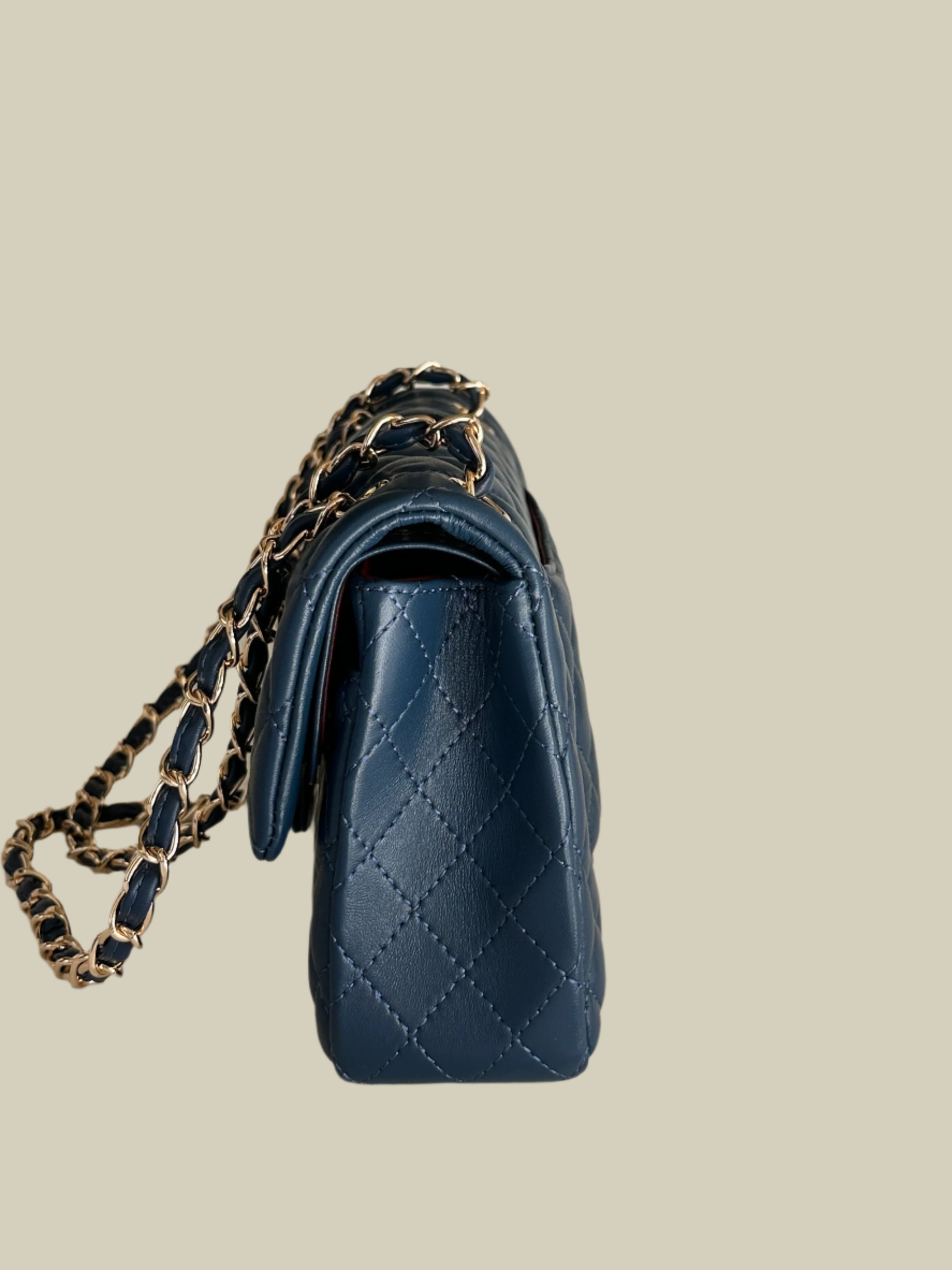 Inside, the double-flap design offers enhanced security and organization, revealing a burgundy leather-lined interior with multiple compartments, including a “love letter” zipper pocket and dedicated spaces for essentials like lipstick. Available in different colors, black , deep sea blue, and a deep Maroon and comes in a size Medium( 25x15x7cm)the Classic Double Flap Bag seamlessly complements both casual and formal ensembles, solidifying its status as a must-have in any discerning wardrobe.