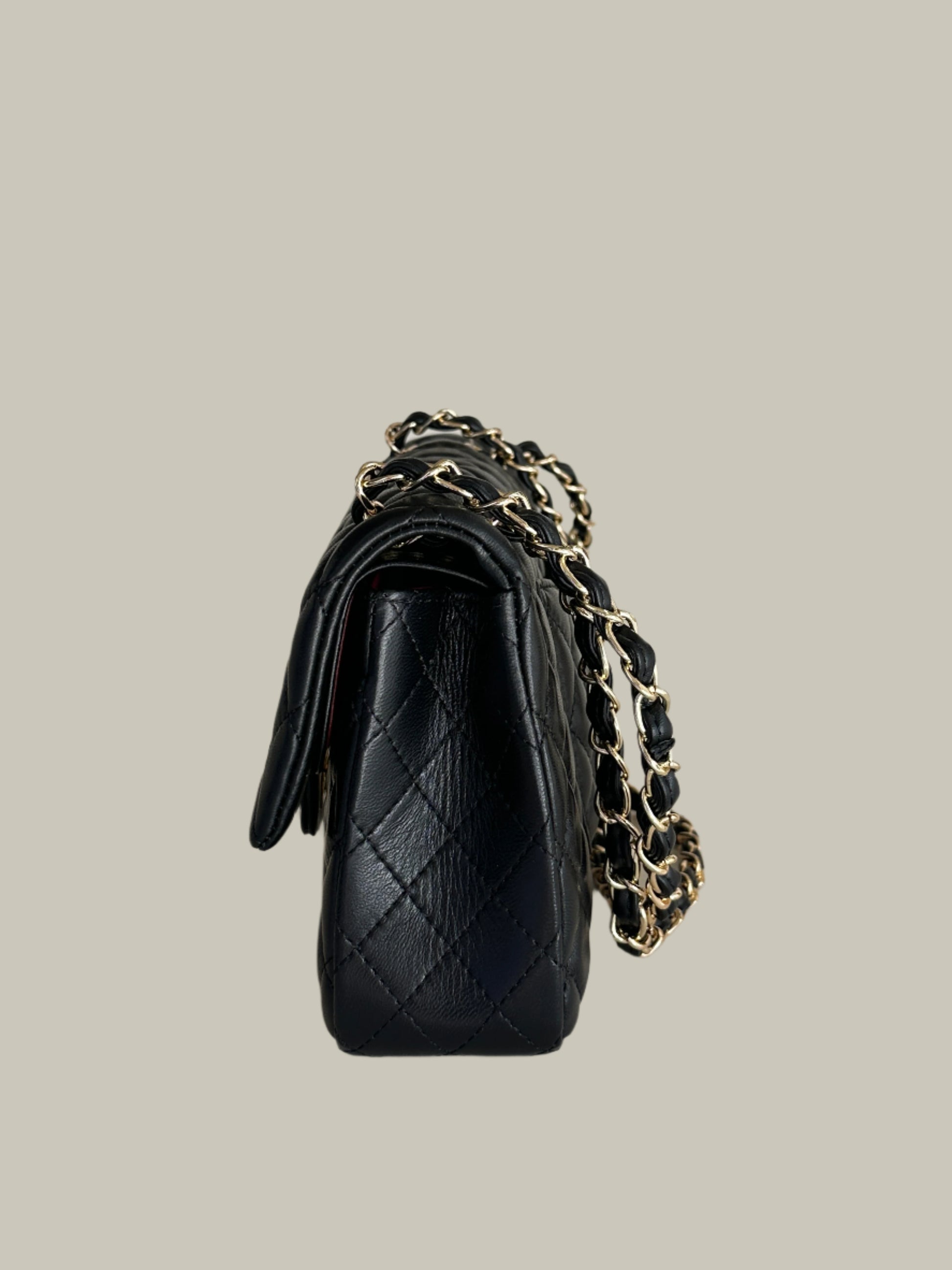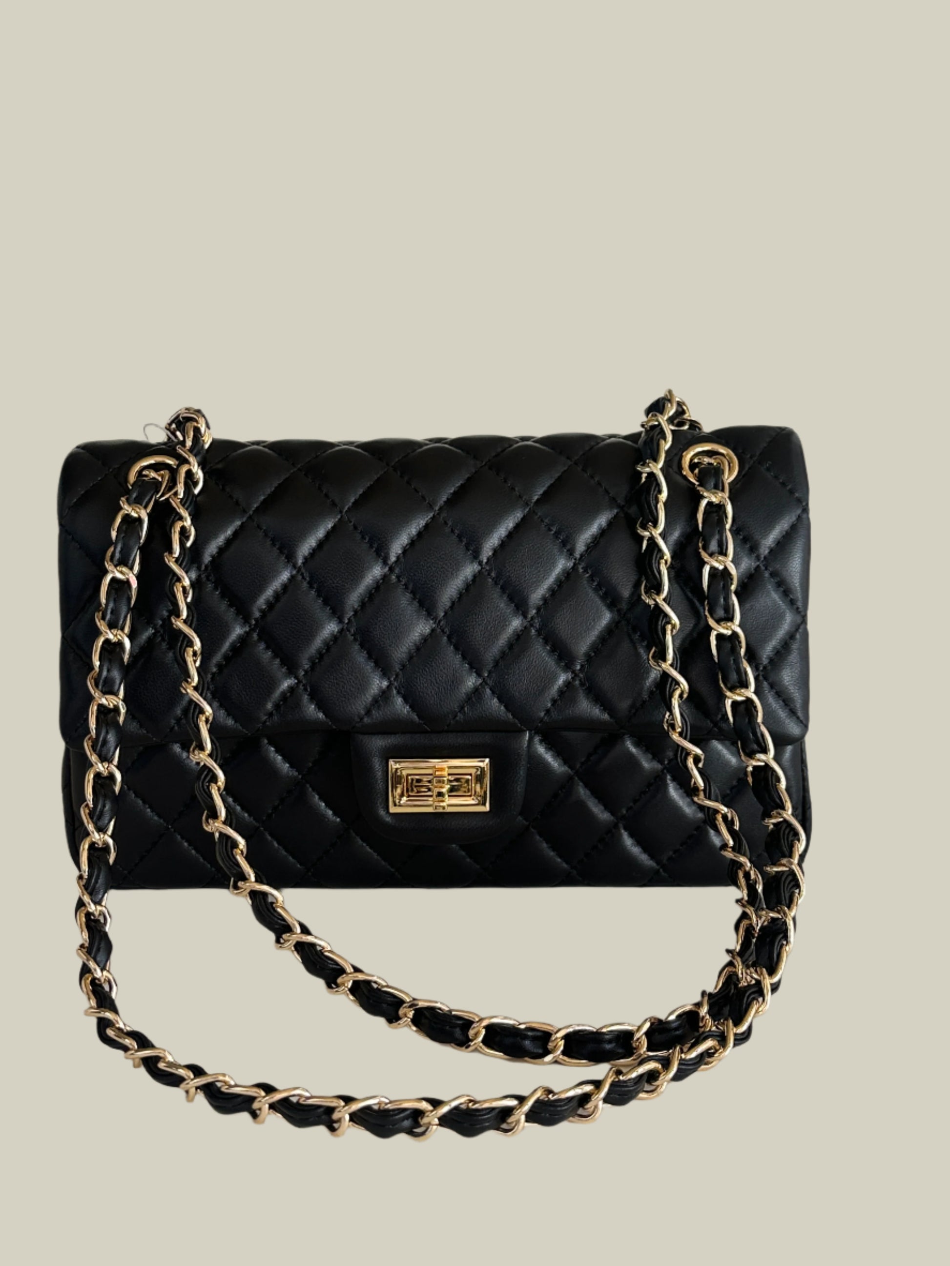 The Double Flap Bag is a beautiful timeless and elegant and bag, Crafted from premium lambskin leather, its distinctive diamond-quilted pattern exudes sophistication. The bag features a rectangular turn-lock closure and an interwoven leather-and-chain shoulder strap, allowing for versatile styling options.