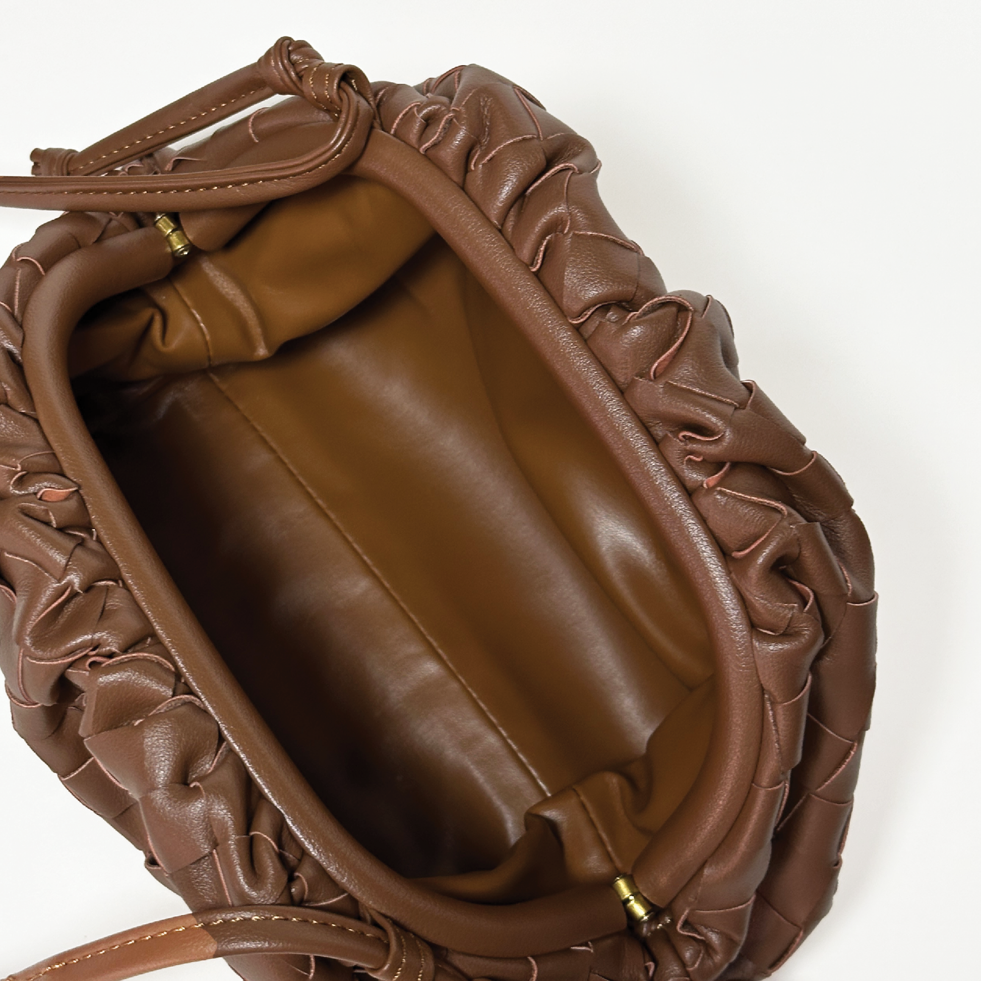 The Mini Woven Clutch is a stylish and versatile accessory crafted from genuine leather. Its intricate woven design adds a touch of elegance, while the metallic finish ensures it stands out. Compact yet spacious enough for essentials, it includes a long strap for convenient, hands-free wear. Perfect for adding a sophisticated touch to any outfit, this clutch effortlessly transitions from day to night.
